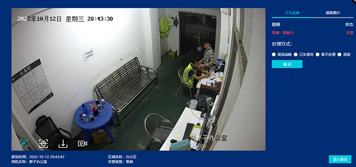 Detection area: Divide the area of interest in the surveillance video, and only workers entering the area will be detected for behavior without wearing work clothes;